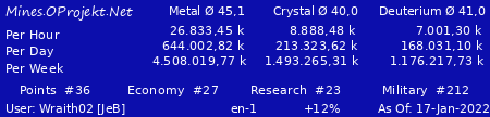 With your mine production you can get a maximum of 7.805.861 Points per week get