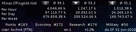 With your mine production you can get a maximum of 1.694.565 Points per week get