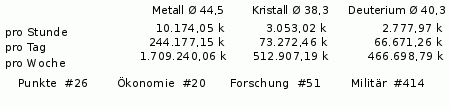 | Name | Metal mine | Production | Crystal Mine | Production | Deuterium mine | Production | Ø |
