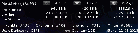 With your mine production you can get a maximum of 415.830 Points per week get