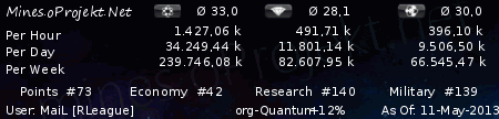 With your mine production you can get a maximum of 2.720.879 Points per month get