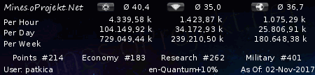 With your mine production you can get a maximum of 1.838.249 Points per week get