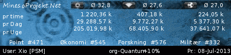 With your mine production you can get a maximum of 2.974 Points per hour get