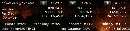 With your mine production you can get a maximum of 358.955 Points per week get