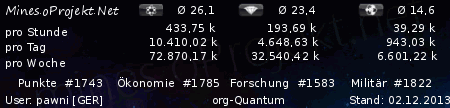 | Name | Metal mine | Production | Crystal Mine | Production | Deuterium mine | Production | Ø |